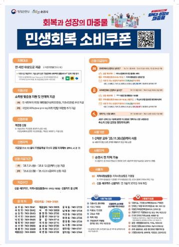 순천시는 2025년 상반기 소상공인 민생경제 회복을 위해 1,200억 원 규모의 순천사랑상품권을 발급한 바 있으며, 이번 소비쿠폰 지급으로 일반 시민들에게도 체감할 수 있는 경제적 혜택을 제공하고, 실질적인 소비 여력을 높여 지역경제 활성화에 기여할 것으로 기대하고 있다