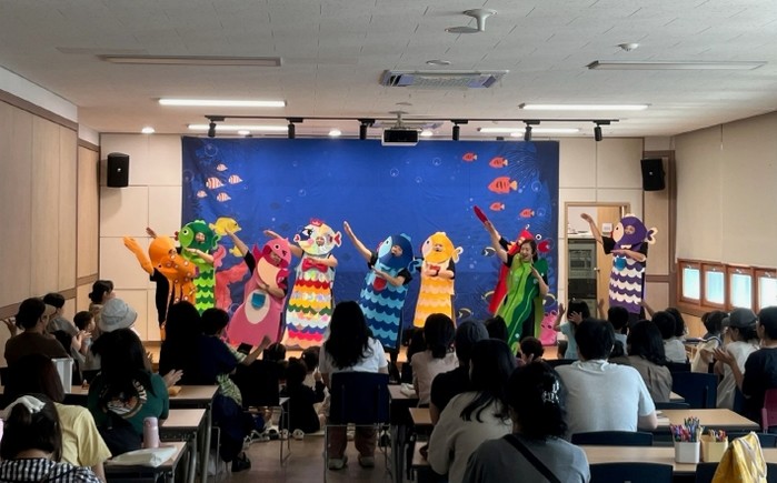 공연에서는 세계적인 베스트셀러 그림책 작가 마르쿠스 피스터의 그림책 ‘무지개 물고기’를 동화구연으로 재해석해 나눔과 우정의 중요성을 아이들에게 쉽고 따뜻하게 전달했다.