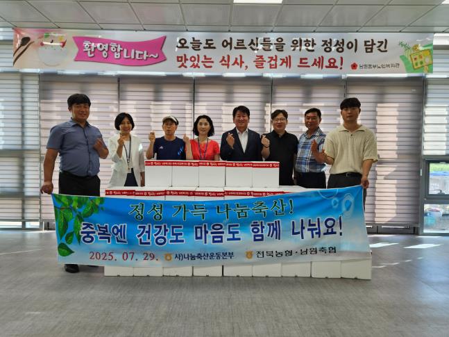 이번 행사는 남원축산업협동조합 본점에서 삼계탕 100마리를 후원하면서 마련됐으며, 무더위에 지친 어르신들이 건강하게 여름을 나실 수 있도록 준비된 뜻깊은 자리였다.