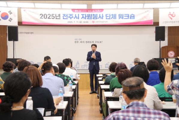 [파이낸셜경제=김예빈 기자] 사단법인 전주시자원봉사센터(이사장 최이천)는 11일 센터 이웃사촌방에서 전주시에 등록된 자원봉사단체 회원 120여 명을 대상으로 ‘2025년 전주시 자원봉사 단체 워크숍’을 개최했다.