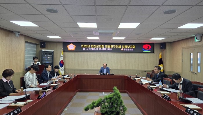 [파이낸셜경제=김예빈 기자] 합천군의회는 지난 23일 의원 연구단체가 추진한 연구용역의 최종보고회를 개최했다.