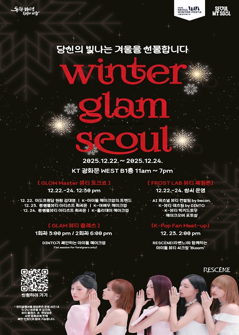 [파이낸셜경제=김예빈 기자] 서울시가 서울윈터페스타를 찾은 국내외 관광객에게 차별화된 한류 경험을 제공하기 위해 K-뷰티를 주제로 한 ‘윈터 글램 서울(Winter Glam Seoul)’ 팝업 행사를 12월 22일부터 24일까지 3일간 개최한다.
