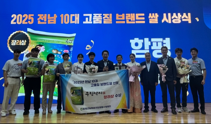함평군의 대표 브랜드쌀 ‘함평 우렁색시미’가 최근 전남도가 주관한 ‘2025 전남 10대 고품질 브랜드 쌀’ 평가에서 장려상을 수상했다”고 30일 밝혔다.