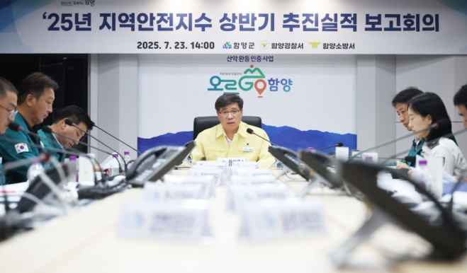 [파이낸셜경제=김예빈 기자] 함양군은 7월 23일 군청 재난종합상황실에서 ‘2025년 지역안전지수 상반기 추진실적 및 하반기 추진계획 보고회’를 열고, 군민 체감형 안전 정책 추진을 위한 실적과 향후 방향을 점검했다.