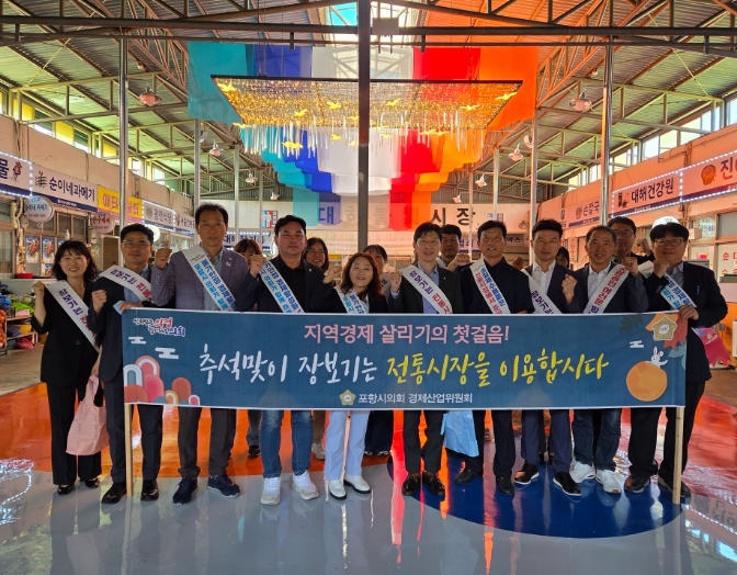 [파이낸셜경제=김지훈 기자] 포항시의회 경제산업위원회(위원장 임주희)는 26일 오전 대해불빛시장에서 “한가위 맞이 전통시장 장보기 행사”를 실시했다.