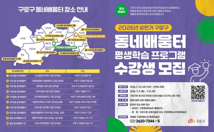 [파이낸셜경제=김예빈 기자] 구로구가 3월부터 7월까지 2026년 상반기 ‘동네배움터’를 운영하고 수강생을 모집한다.