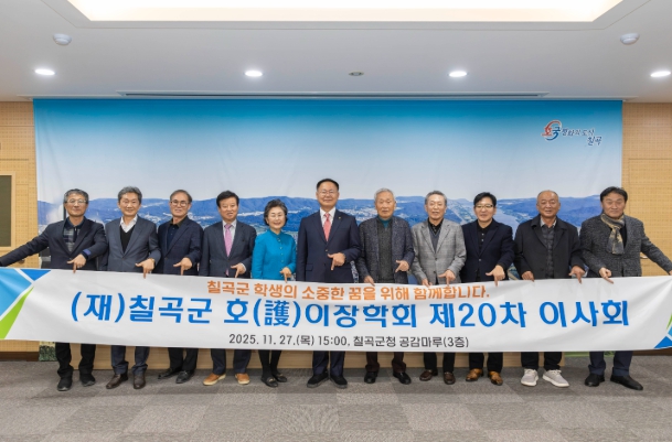 [파이낸셜경제=김지훈 기자] (재)칠곡군호이장학회는 지난달 27일 칠곡군청 공감마루 회의실에서 김재욱 이사장(칠곡군수)을 비룻한 이사 및 감사들이 참석한 가운데 ‘제20차 정기 이사회’를 개최했다.