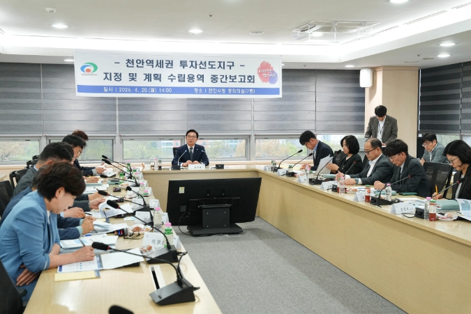 천안시는 20일 시청 중회의실에서 ‘천안역세권 투자선도지구 지정 및 계획수립용역 중간보고회’를 열고, 그동안의 추진 현황 점검과 함께 원도심 활성화를 위한 실행 전략을 논의했다.