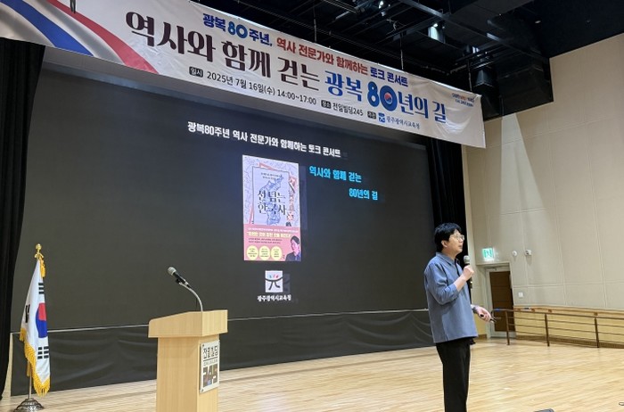 [파이낸셜경제=김예빈 기자] 광주시교육청은 16일 전일빌딩245 다목적강당에서 교원을 대상으로 ‘박광일 작가와 함께하는 역사 토크 콘서트’를 진행했다.