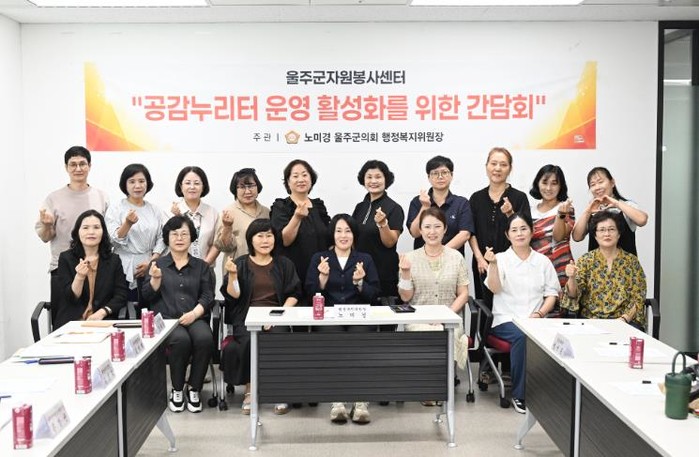 이날 간담회에는 공감누리터 팀장 및 자원봉사 코치, 의회 전문위원, 관련 부서 관계자, 울주군자원봉사센터 직원 등 20명이 참석해 현장의 목소리를 나눴다.