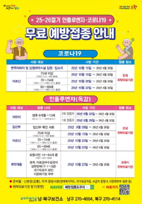 ▲ 25-26절기 인플로엔자·코로나19 무료 예방접종 안내문. |