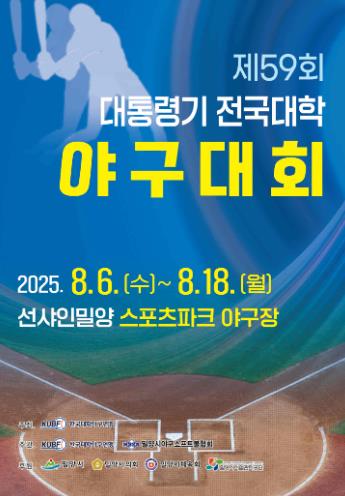 대학 야구 최강자를 가리는‘제59회 대통령기 전국대학 야구대회’가 8월 6일부터 8월 18일까지 13일간 선샤인 밀양 테마파크 내 스포츠파크 야구장에서 개최된다.