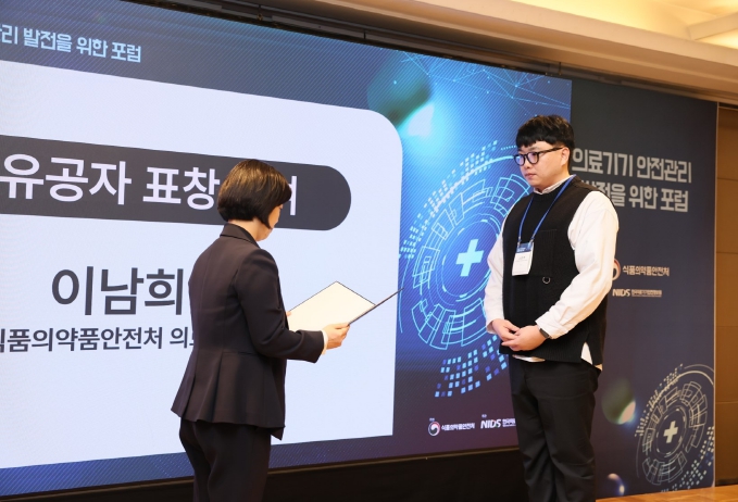 [파이낸셜경제=김지훈 기자] 케이메디허브(대구경북첨단의료산업진흥재단, 이사장 박구선) 연구원이 식품의약품안전처 주관 ‘의료기기 안전관리 발전 포럼’ 행사에서 ‘식품의약품안전처장 표창’을 수상했다.