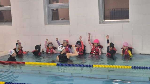 | ▲ 4월 14일 반디비 빙상장 수중운동실에서 열린 생존수영 교육 모습 |