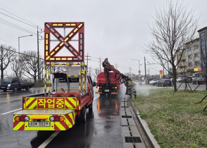 작업에 굴절식 브러쉬 차량, 고압세척기, 살수차 등 전문 장비를 투입해 도로시설물에 쌓인 미세먼지와 매연, 각종 오염물질을 효과적으로 제거했다.