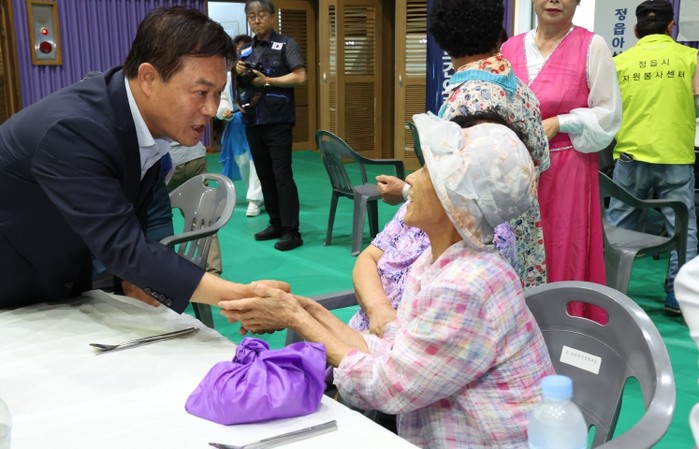 이 시장은 이날 감곡양수제(경로당)를 찾아 폭염과 집중호우 속 야외활동이 많은 어르신들의 건강과 안전 상황을 직접 살피고 위문했다. 이어 감곡문화체육센터에서 전북도 자원봉사센터와 함께 ‘함께 전북, 정읍시 착한 한끼 나눔 행사’를 개최해 지역 어르신 300여 명에게 따뜻한 식사를 제공했다.