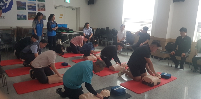 심폐소생술 교육은 대한심폐소생협회의 심폐소생술 동영상을 활용하였으며, △목격자 심폐소생술의 중요성 △현장 안전 확인 △반응 확인 △119신고 및 심장충격기 요청 △호흡상태 확인 △전화도움 심폐소생술 △가슴압박과 인공호흡 △소아 심폐소생술 △심폐소생술 전체과정 실습 △자동심장충격기 소개 및 실습 △심폐소생술과 자동심장충격기 전체 실습 등의 내용으로 프로그램이 진행됐다.