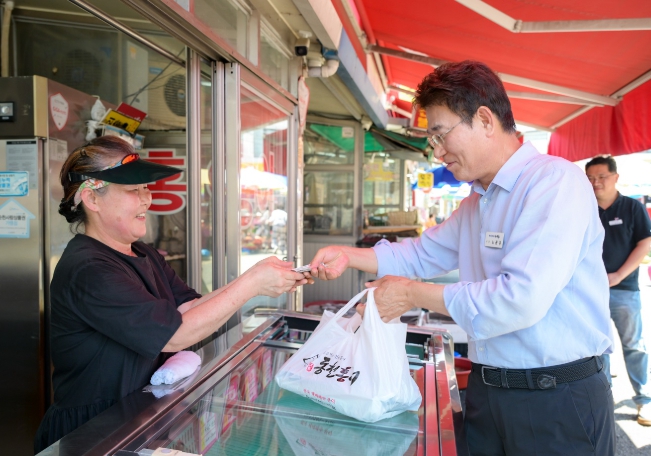 이날 노관규 시장은 소비쿠폰 사용처인 전통시장과 원도심 등을 차례로 방문해 소비쿠폰을 직접 사용해 보고 문제점 점검 및 상인들의 애로사항을 청취했다.