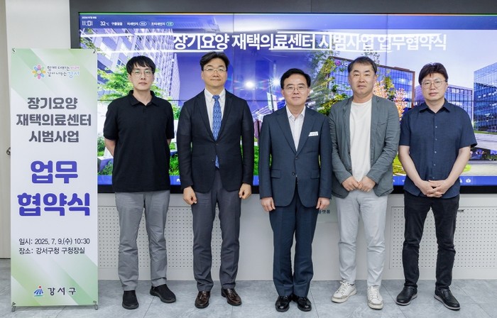 구는 9일 구청장실에서 지역 내 의료 기관 4곳과 ‘장기요양 재택의료센터 시범사업 업무협약’을 체결했다. 이로써 구는 기존의 1개 기관(정내과의원, 대표 정경헌)에 더해 강서허준한의원(대표 신민성), 경희소나무한의원(대표 김경태), 본앤본정형외과의원(대표 조용진), 88플러스내과(대표 서충교) 등 총 5곳을 재택의료센터로 지정해 운영 중이다.
