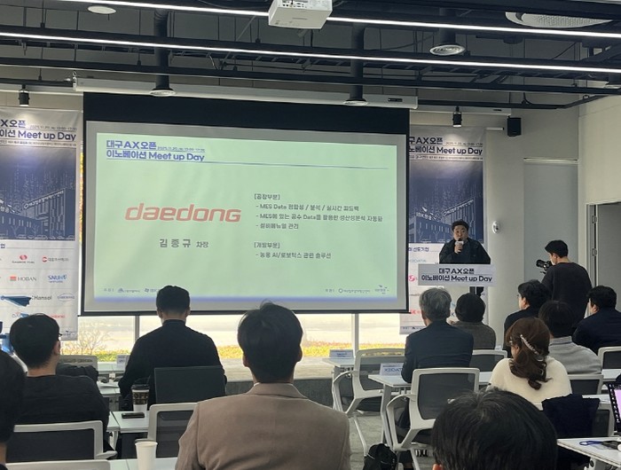 본격 밋업에 앞서 대홍코스텍 김기환 대표가 ‘대구·경북 중소기업의 AX 현황’을 주제로 기조 강연을 진행했고, 선도기업과 스타트업 간 협업 가능한 과제를 소개하는 기업 리버스 피칭이 이어졌다.