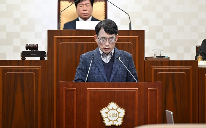 ▲ 해운대구의회 김상수 의원이 제293회 임시회 본회의에서 5분 자유발언을 하고 있다.