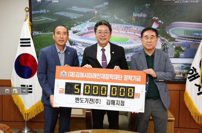 [파이낸셜경제=김예빈 기자] 김해시미래인재장학재단(이사장 노은식)은 14일 반도기전(주) 김해지점에서 500만원 장학기금을 기탁했다고 밝혔다.