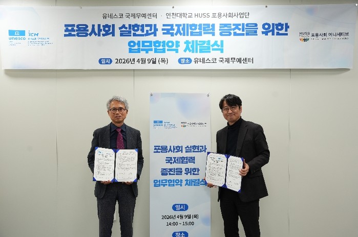 [파이낸셜경제=김기보 기자] 유네스코 국제무예센터(ICM, 사무총장 김규직)는 4월 9일 충북 충주시 소재 유네스코 국제무예센터에서 인천대학교 HUSS 포용사회사업단(총괄단장 옥우석)과 업무협약(MOU)을 체결했다.