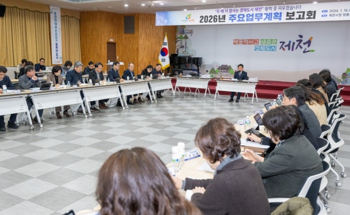 [파이낸셜경제=김기보 기자] 제천시는 지난 16일 시청 청풍호실에서 전 부서가 참여하는 ‘2026년 주요업무계획 보고회’를 개최하고, 새해 시정 운영 방향과 핵심사업 전반을 점검했다.