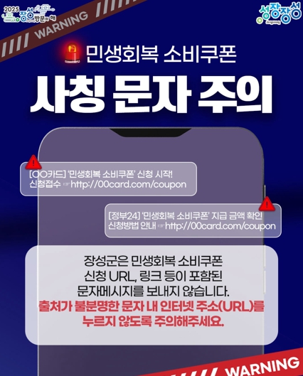 | ▲ 장성군 “민생회복 소비쿠폰 사칭문자 주의하세요” |