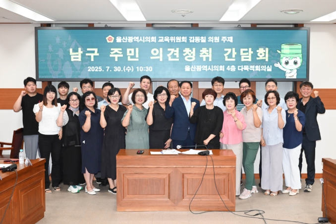 [파이낸셜경제=김예빈 기자] 울산광역시의회 김동칠 의원(교육위원회, 달동ㆍ수암동)은 30일 오전, 시의회 4층 다목적회의실에서 남구지역 주요 현안에 대한 주민 의견청취 간담회를 열고, 지역 내 생활 불편 해소와 교육환경 개선 방안 등을 논의했다.