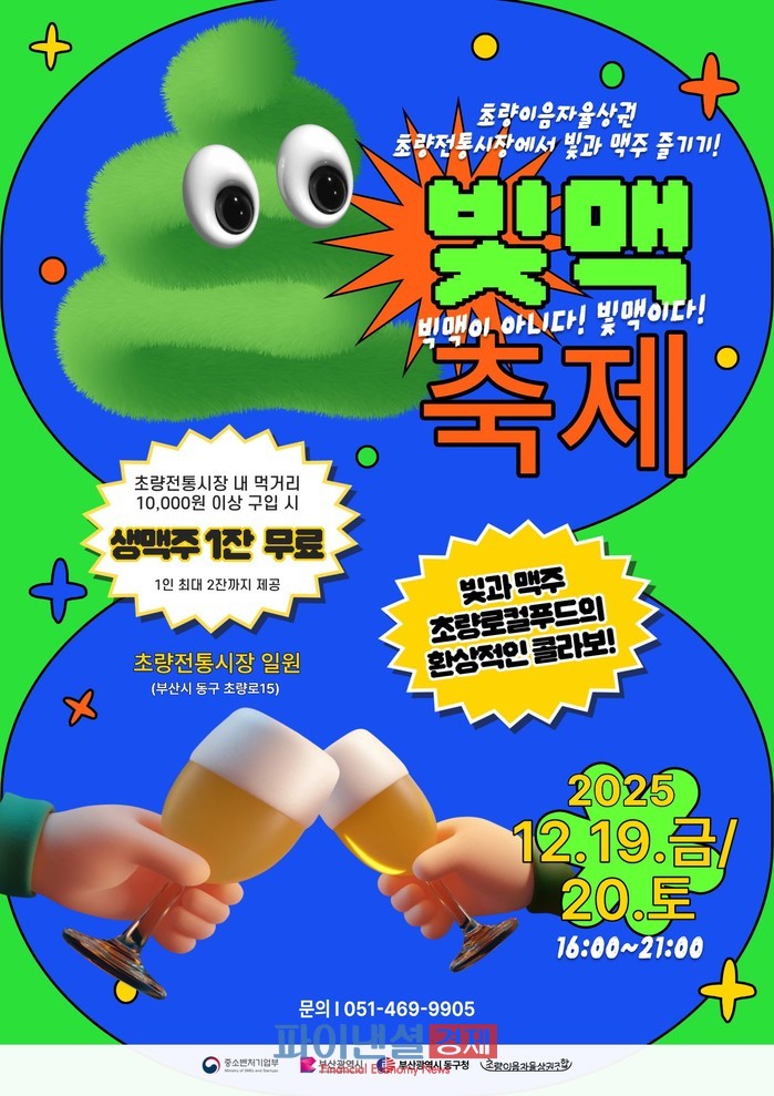 [파이낸셜경제=박영진 기자] 부산 동구 초량이음자율상권은 오는 12월 19일(금)과 20일(토) 오후 4시부터 9시까지, 초량전통시장 일원에서 ‘2025 초량이음자율상권 빛과 맥주가 있는 빛맥축제’를 개최한다.