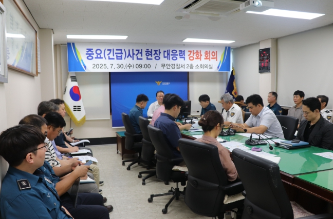 [파이낸셜경제=김예빈 기자] 무안경찰서는 30일 2층 소회의실에서 경찰서장, 각 과장, 지·파출소장 등 40여 명이 참석한 가운데 중요 사건 현장대응력 강화 회의를 개최했다고 밝혔다.