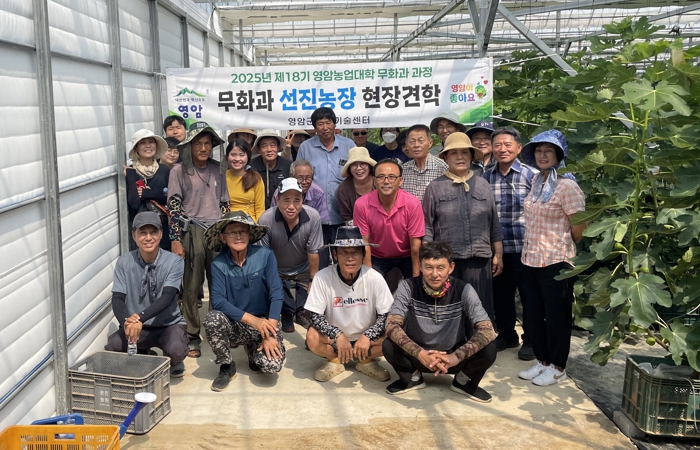[파이낸셜경제=김예빈 기자] 영암군이 10일 삼호읍 동역마을 무화과 재배 농가에서 영암농업대학 무화과 과정 교육생 30명이 참여하는 선진 무화과 재배지 현장 견학을 실시했다.