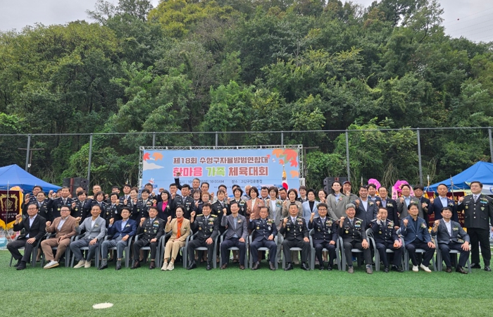 ▲ 대구 수성구자율방범연합대가 가족 및 참석 내빈과 함께 ‘2025 수성구자율방범연합대 한마음 가족 체육대회’ 단체 기념촬영을 하고 있다. |