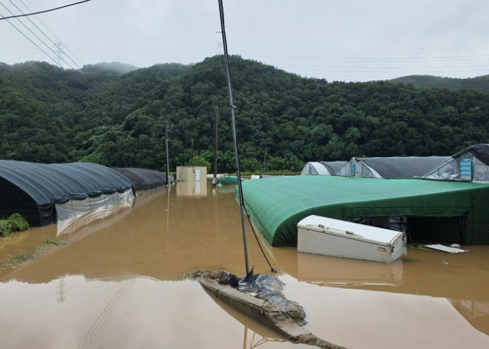 | ▲ 호우로 인해 비닐하우스가 물에 잠겼다. |