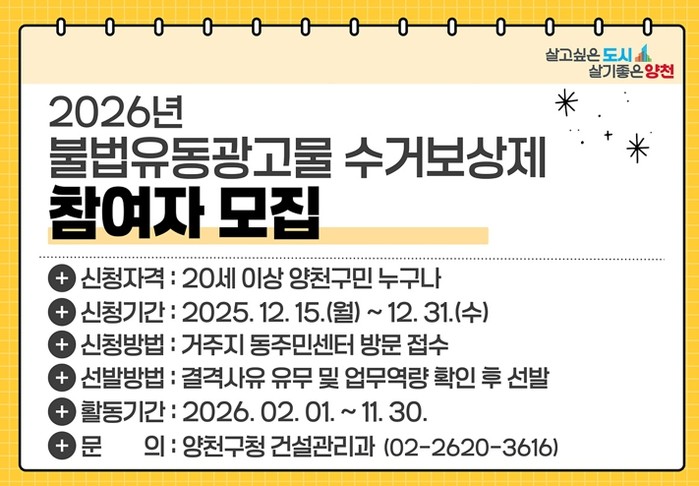 | ▲ 양천구, 불법광고물 수거보상제 참여자 모집 안내 이미지 |