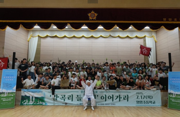 [파이낸셜경제=김예빈 기자] 들판을 일구던 어른들의 노래가 어린이의 입에서 다시 피어났다. (재)영암문화관광재단은 ‘2025 찾아가는 전통문화활동 지원사업’의 일환으로, 지역 문화예술단체 더현음재(대표:정세영)와 함께 진행한 “우리의 노동요, ‘갈곡리 들소리’ 이어가리” 행사가 제헌절인 7월 17일 성황리에 마무리했다고 밝혔다.