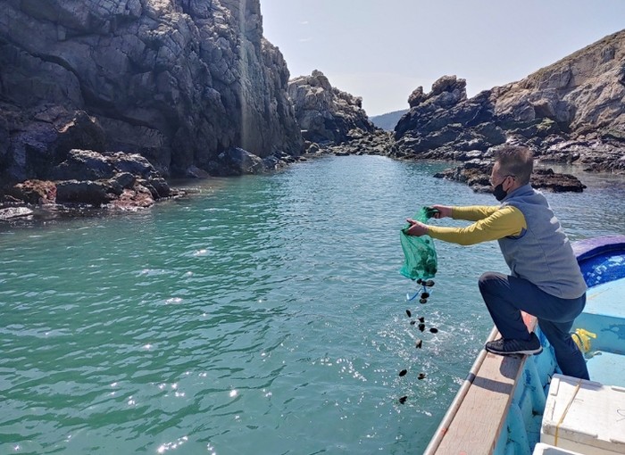 | ▲ 2025년 양식장관리선을 이용하여 전복종자를 해상 방류했다. |