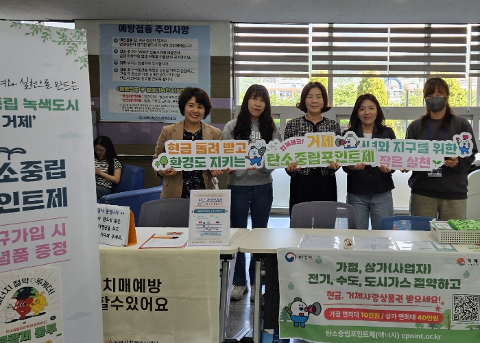 [파이낸셜경제=김예빈 기자] 거제시는 탄소중립 실천문화 확산을 위해 매달 ‘찾아가는 탄소중립 생활실천’홍보부스를 운영하며, 5월에는 시청 민원실, 보건소, 반다비체육센터 등 시민들이 자주 찾는 장소에서 집중 홍보에 나선다고 밝혔다.