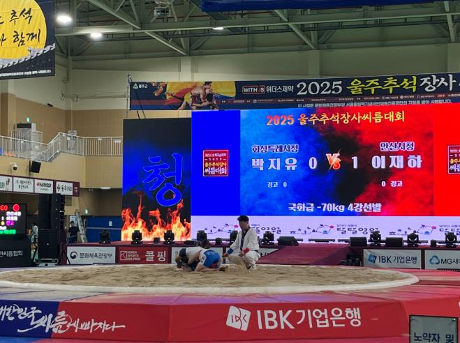 [파이낸셜경제=김예빈 기자] 울산 울주군에서 3년 만에 열리는 전국 씨름대회 ‘위더스제약 2025 울주추석장사씨름대회’가 2일 삼남읍 울주종합체육센터에서 성대한 막을 올렸다.