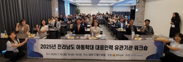 [파이낸셜경제=김예빈 기자] 전라남도는 15일 담양 드몽드호텔에서 2025년 전남도 아동학대 대응인력 유관기관 워크숍을 열어 ‘아동학대 없는 건강하고 안전한 전남’ 조성을 위한 협력 기반을 다졌다.