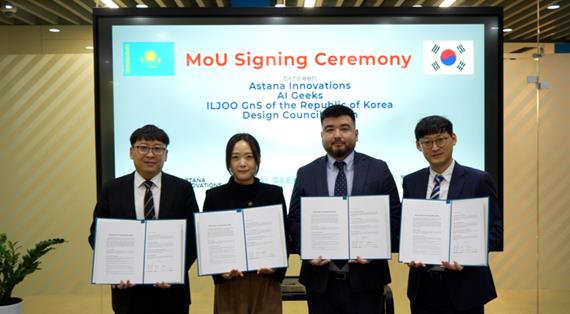 | ▲ AI Geeks·(재)부산디자인진흥원·아스타나 이노베이션·(주)일주지앤에스 업무협약 체결(왼쪽부터) |