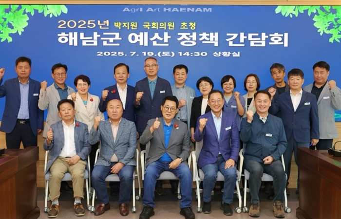 [파이낸셜경제=김예빈 기자] 해남군은 19일 해남·완도·진도 지역구 박지원 국회의원을 초청, 2025년 예산·정책 간담회를 개최하고, 지역 현안 사업의 성공적 추진을 위한 협조체계를 구축하고 지역미래발전을 위한 국회와 지자체의 힘을 모아 나가기로 했다.