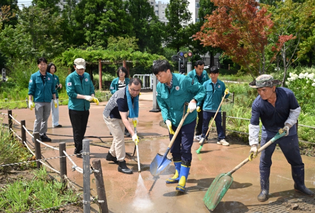 [파이낸셜경제=김예빈 기자] 20일 이채권 남구부구청장은 7월 19일 집중호우로 침수 피해를 입은 태화강 둔치를 현장방문하여 남구청 공무원과 함께 환경정비를 실시했다.