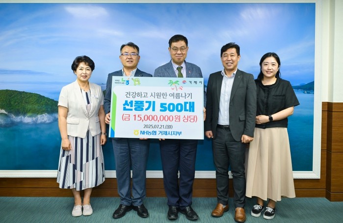 이에 민기식 거제시 부시장은 “필요한 시기에 꼭 맞는 도움을 주신 농협은행 거제시지부에 깊이 감사드린다”며 “이번 나눔이 무더위 속 시민들에게 든든한 그늘이 되어주길 기대한다”고 전했다.