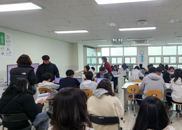4일에는 운정중학교에서 두 번째 공개수업이 진행됐으며, ‘데이터로 그리는 기후 시간 여행’을 주제로 기상청의 20년간 기후 데이터를 분석하고 기후변화 시나리오를 예측해 보는 시간을 가졌다. 해당 프로그램은 데이터 기반 탐구 역량을 강화하고 기후 위기 문제를 과학적으로 이해하도록 설계돼 참여 교원들로부터 높은 관심을 받았다. 이어 실시된 수업 나눔에서는 데이터 기반 기후교육의 필요성과 학생의 탐구 주도성을 높이기 위한 방안을 중심으로 심도 있는 논의가 이어졌다.