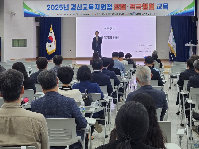 [파이낸셜경제=김지훈 기자] 경산교육지원청은 10월 15일 13시 10분부터 경산교육지원청 학생교육지원관 2강당에서 청렴·적극행정 교육을 실시했다.