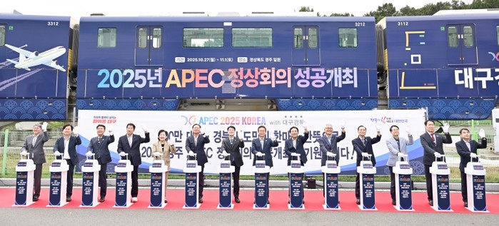 [파이낸셜경제=김지훈 기자] 경상북도는 22일 대구 도시철도 3호선 칠곡차량기지에서 열린 ‘대구·경북 APEC 홍보 열차’ 출발 행사에 참석해 2025 APEC 정상회의의 성공 개최와 대구·경북의 공동협력을 다짐했다.