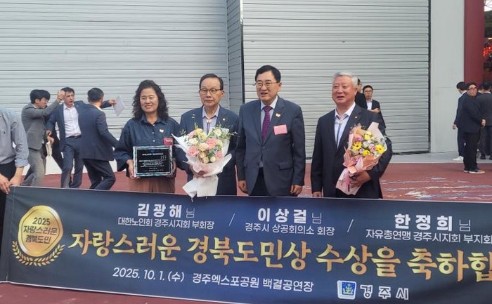 [파이낸셜경제=김지훈 기자] 경주시는 1일 열린 ‘2025 자랑스러운 경상북도민상’ 시상식에서 경주시민 3명이 수상자로 선정되는 영예를 안았다고 밝혔다.