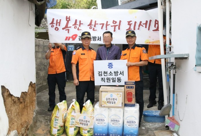 [파이낸셜경제=김지훈 기자] 김천소방서는 추석을 앞두고 나라를 위해 헌신한 유공자분들의 숭고한 희생을 기리며 감사의 마음을 전하고자 국가유공자 가정을 직접 찾아 위문품을 전달했다고 30일 밝혔다.